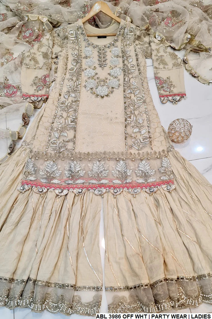 This elegant straight shirt with sharara is made from luxurious organza fabric, offering both grace and sophistication. The grip trousers provide a perfect balance of comfort and style, complementing the overall look. With a shirt length of 38 to 40 inches, it offers a flattering fit for various body types. The organza dupatta adds a delicate and airy touch, enhancing the ensemble's elegance. Weighing 1.750 kg, this outfit is perfect for festive occasions, offering both beauty and comfort in one stunning package.