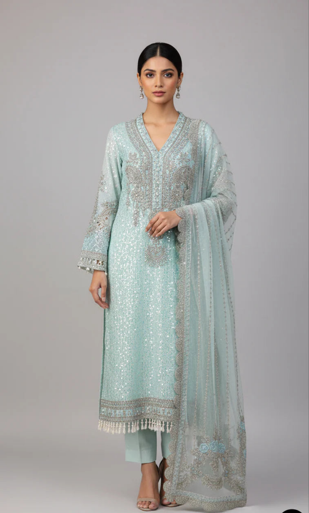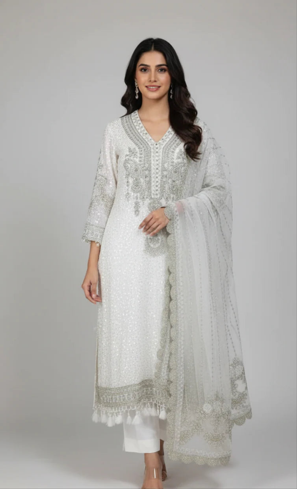 This outfit is designed with premium-quality materials to ensure comfort and elegance. The shirt is crafted from soft and flowy chiffon, paired with a durable grip fabric trouser that provides structure and ease. The chiffon dupatta adds a graceful finishing touch, enhancing the overall look. Featuring a stylish straight shirt design with a length of 45/47 inches, this outfit is both modern and traditionally appealing. With a total weight of 1.450 kg, it offers a lightweight yet luxurious feel, perfect for various occasions