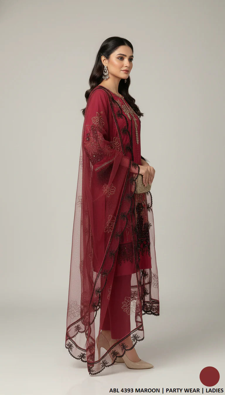 This elegant outfit features a premium organza shirt paired with comfortable viscose palazzo trousers, offering a perfect blend of style and ease. The look is completed with a delicate net dupatta that adds a graceful and contemporary touch. Designed in a modern shirt open cut with palazzo style, the shirt comes in a length of 46/48 inches, providing a flattering and sophisticated silhouette. With an approximate weight of 1.150 kg, this outfit is ideal for festive occasions or formal gatherings.