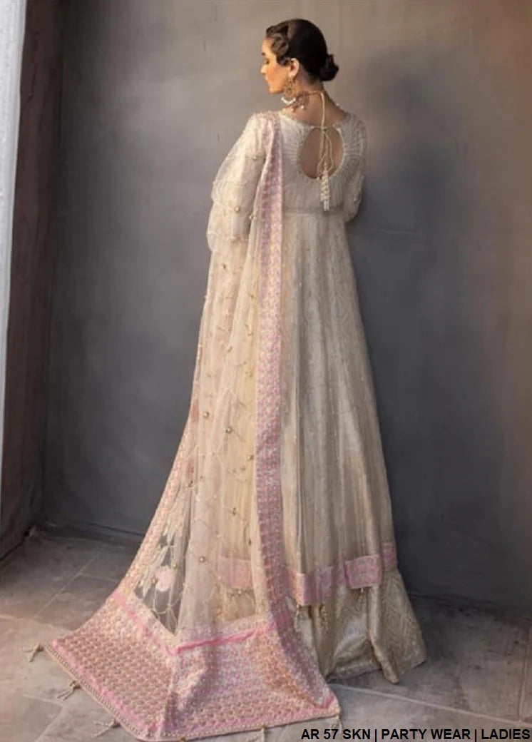 - This exquisite outfit combines elegance and sophistication with its premium choice of fabrics and design. The shirt is crafted from delicate net fabric, paired with comfortable viscose trousers, creating a perfect blend of style and ease. The dupatta, also made from net, adds a touch of grace to the ensemble. Designed in a long maxi style with a shirt length of 58 to 60 inches, this attire exudes timeless charm and grandeur. Weighing approximately 2.8 kg, it is an ideal choice for making a statement at special occasions and formal events.