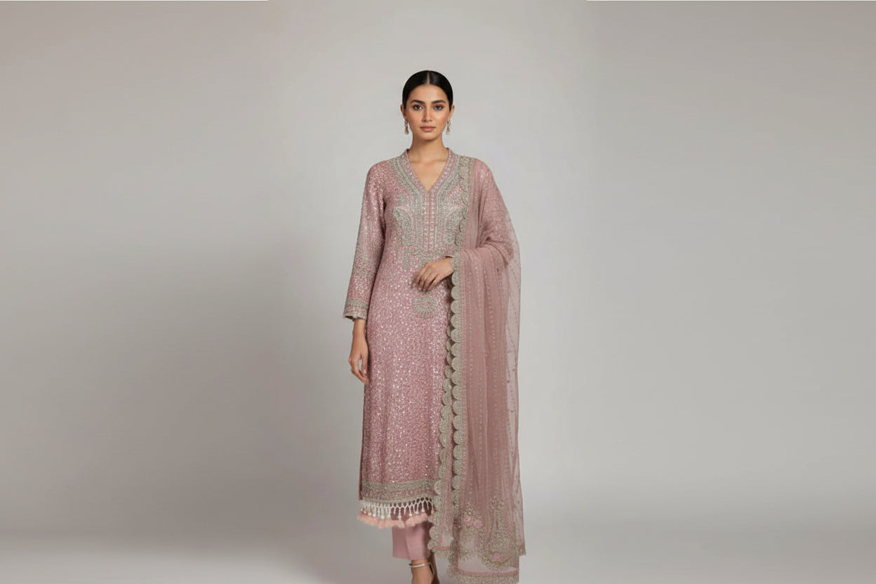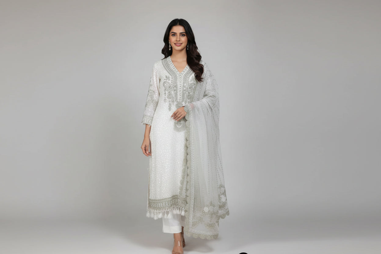 This outfit is designed with premium-quality materials to ensure comfort and elegance. The shirt is crafted from soft and flowy chiffon, paired with a durable grip fabric trouser that provides structure and ease. The chiffon dupatta adds a graceful finishing touch, enhancing the overall look. Featuring a stylish straight shirt design with a length of 45/47 inches, this outfit is both modern and traditionally appealing. With a total weight of 1.450 kg, it offers a lightweight yet luxurious feel, perfect for various occasions.