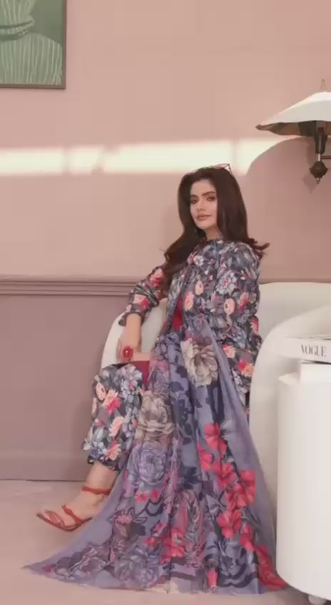 Step out in style with this elegant and vibrant three-piece co-ord set, perfect for a casual outing or semi-formal event. The breathable fabric ensures all-day comfort while the unique floral print makes a bold fashion statement. This ensemble offers a seamless blend of traditional charm and contemporary design.