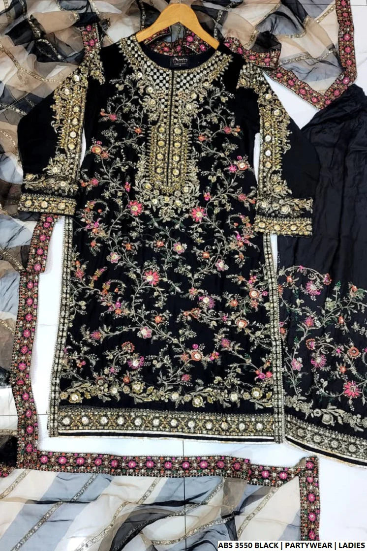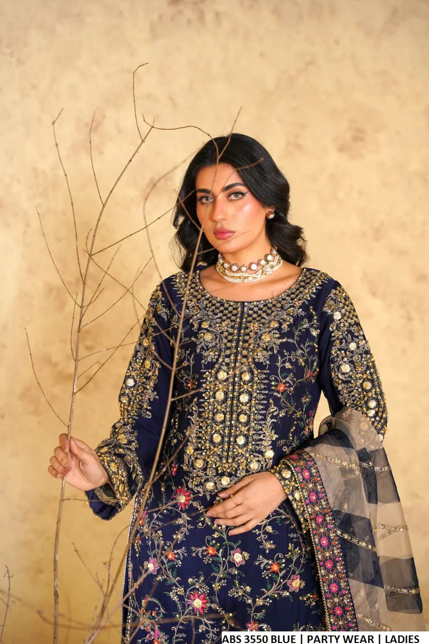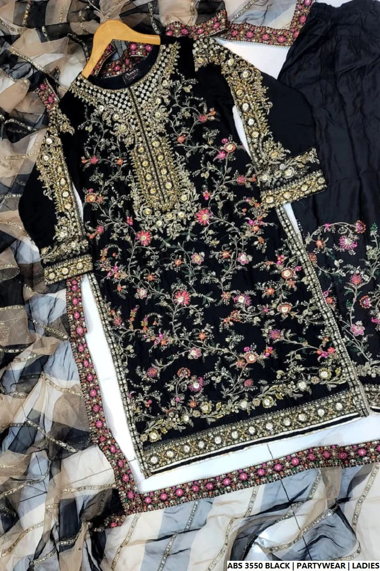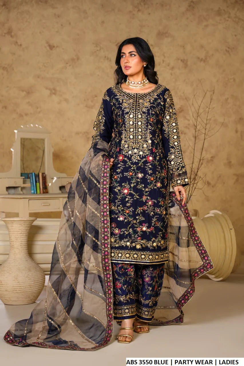 This beautifully crafted outfit features a Straight Shirt style made from luxurious Chiffon fabric, paired with comfortable and soft Viscose trousers. The look is completed with an elegant Organza Dupatta, adding a touch of sophistication to the ensemble. With a shirt length of 42 to 44 inches and a total weight of 1.050 KG, this 3-piece set is ideal for formal events, festive occasions, or classy evening wear.