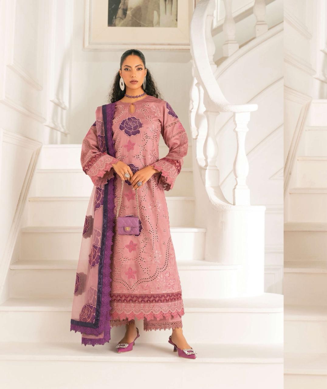 Elevate your style with this beautifully stitched outfit, paired with a luxurious pure organza dupatta that drapes effortlessly and adds an elegant finish. The subtle front embroidery enhances the refined look, making it perfect for festive and formal occasions.